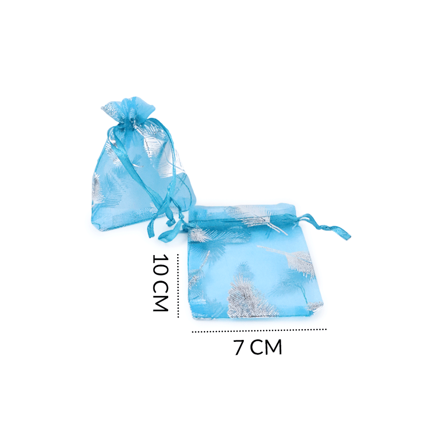 Bolsa tull azul estampado hojas plateadas 7x10cm / x und / REF-8900AG