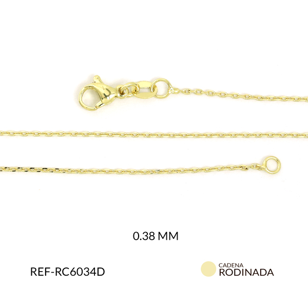 - Uso: Esta cadena punto diamante en acero dorado de 0.38 mm es ideal para confeccionar collares y pulseras ligeras o para combinar con dijes pequeños. Su textura brillante y diseño delgado aportan sutileza y elegancia.