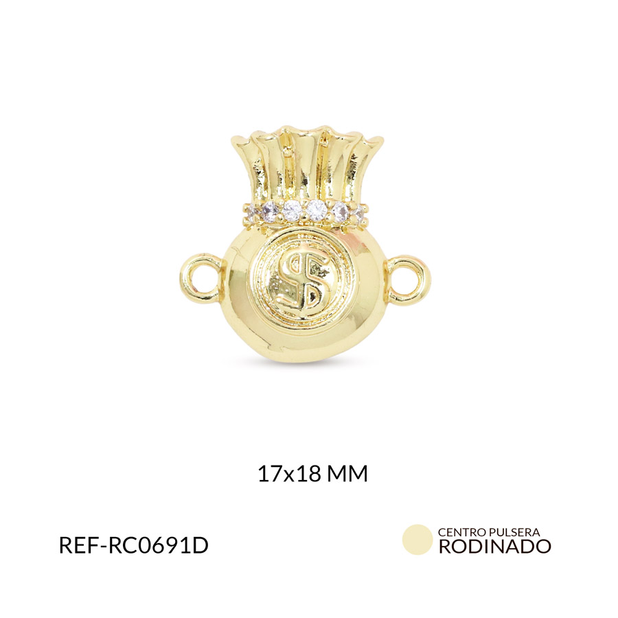 Centro pulsera rodinado bolsa signo pesos 17x18mm x und