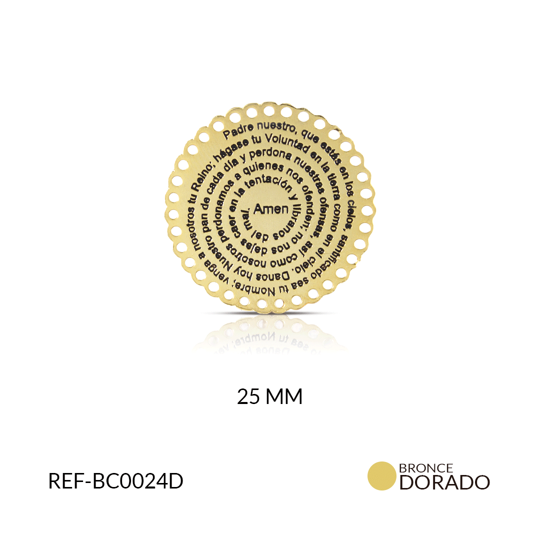 CENTRO PULSERA BRONCE REDONDO PADRE NUETRO LETRA NEGRA/ x UND/25mm / REF-BC0024D