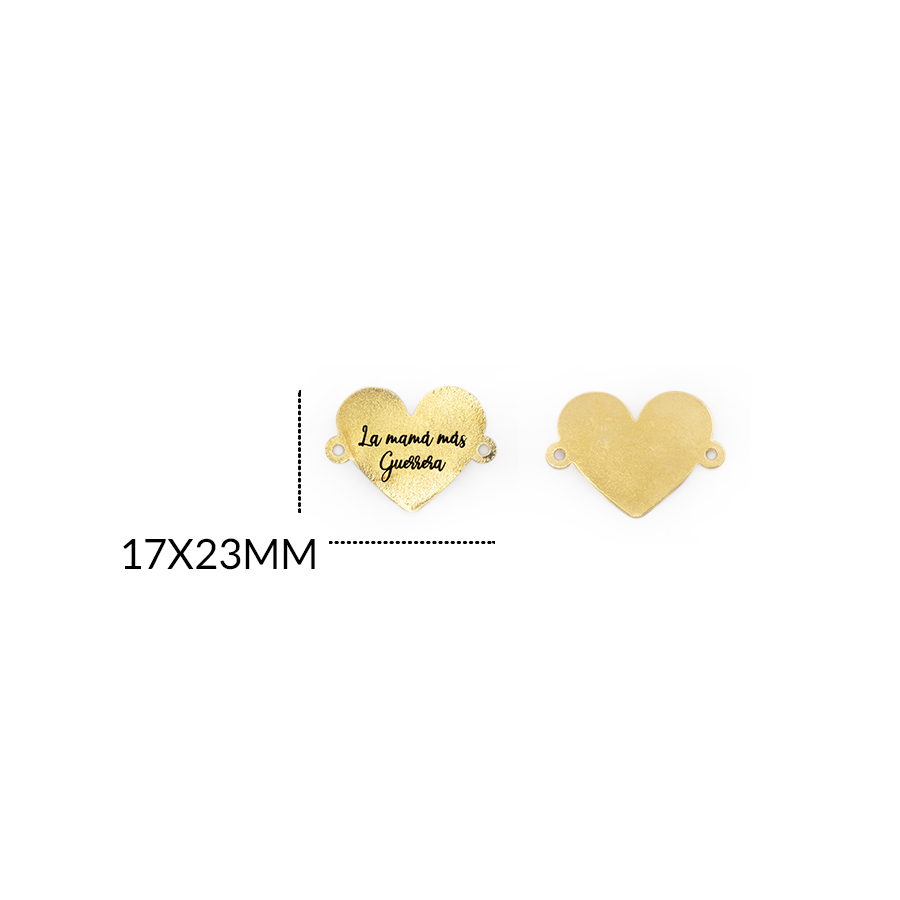CENTRO PULSERA EN BRONCE CORAZON FRASE la mamá más guerrera 17 X 23MM / color dorado / por unidad / REF-BC0050D / REF-BC0050D