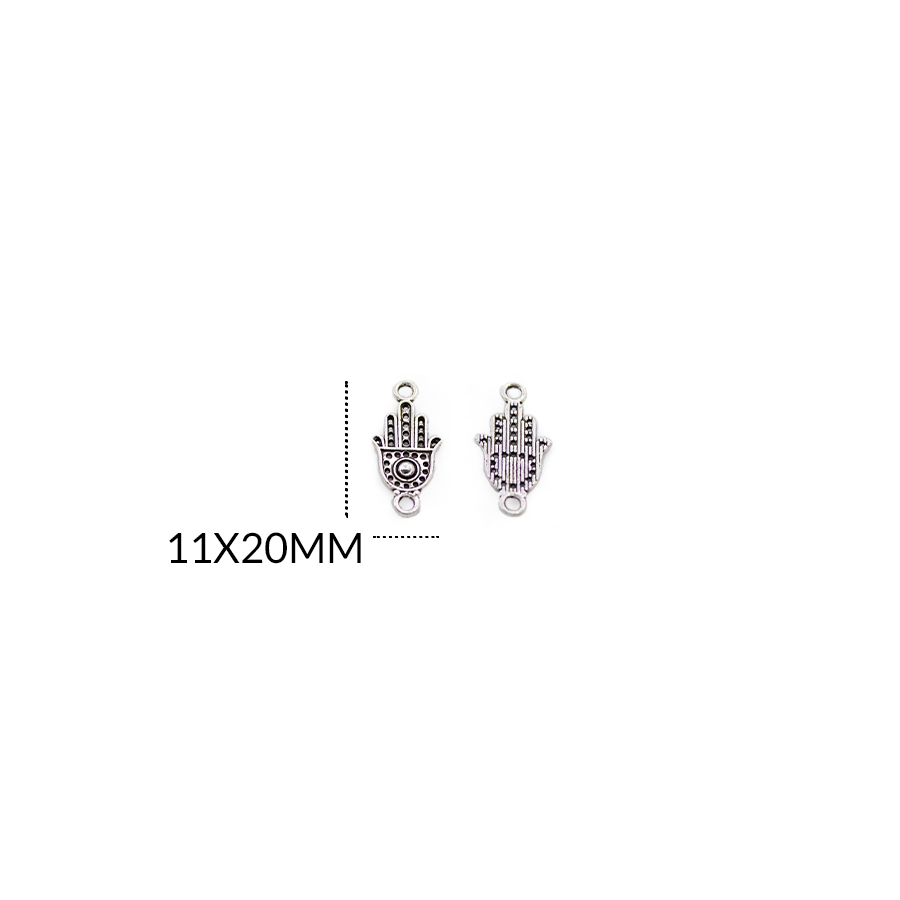 CENTRO PULSERA EN ZAMAK MANO HAMSA 11 X 20MM / color niquelado / paquete x 12 unidades / REF-ZC0023N / REF-ZC0023N