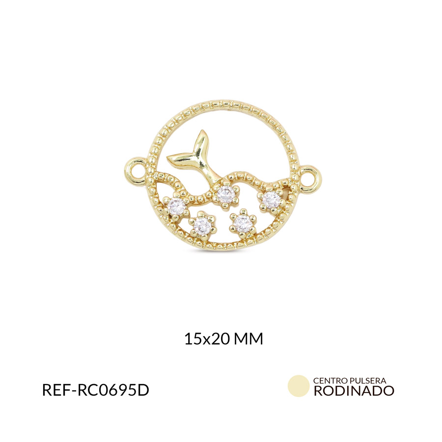 Centro pulsera rodinado cola de sirena 15x20mm x und