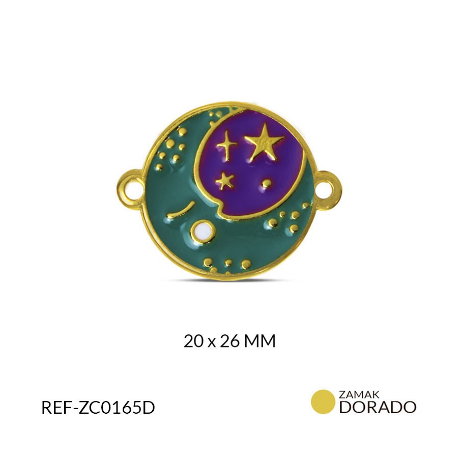 CENTRO PULSERA ZAMAK LUNA VERDE CIELO + ESTRELLA MORADA 26X20 / x UND / Ref-ZC0165D