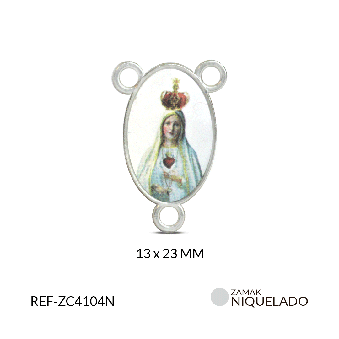 CRUCERO ZAMAK VIRGEN DE FATIMA FONDO BLANCO 13*23 MM / PAQUETE x 6 UND / Ref-ZC4104N