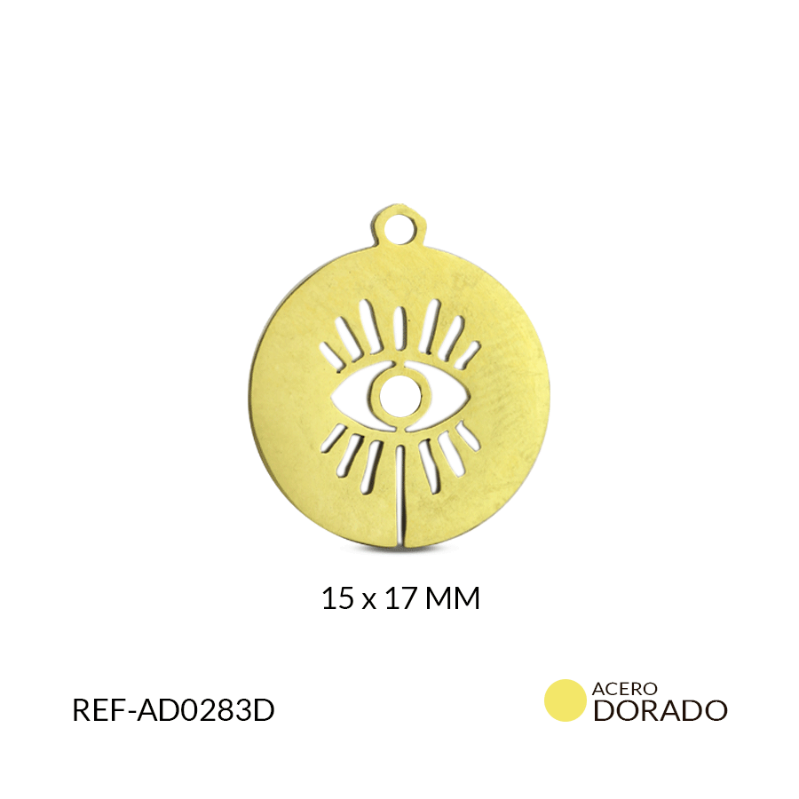 DIJE ACERO CIRCULO OJO PESTAÑA 15×17 MM / x UND / Ref-ad0283d