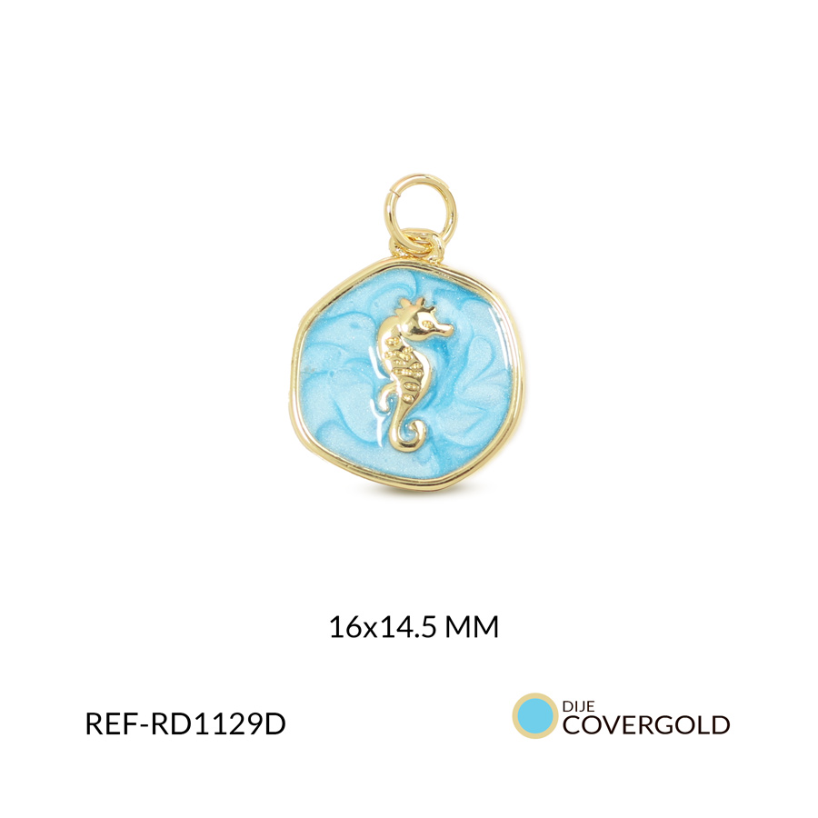 - Uso: Se emplea como pieza central, se puede incorporar en cadenas, brazaletes, manillas y llaveros ideal para accesorios playeros o colecciones de verano su acabado dorado y su diseño de caballito de mar en resina azul lo hace un accesorio elegante y sofisticado.