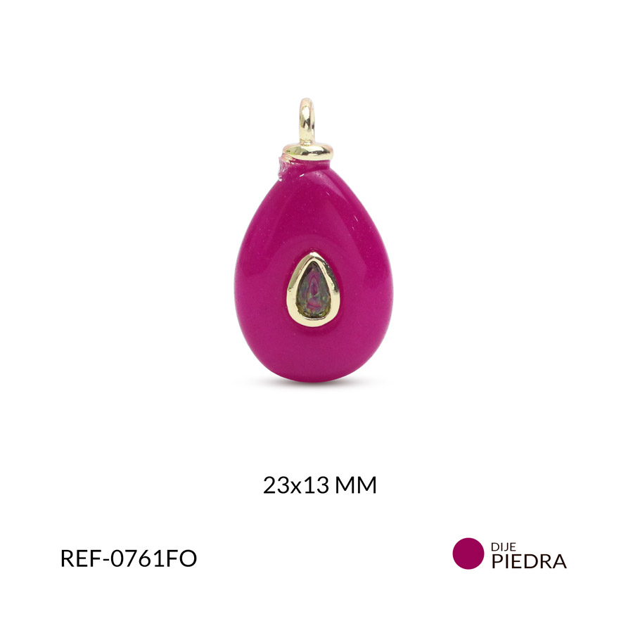 Dije en piedra natural ovalado ágata fucsia 23x13mm x und