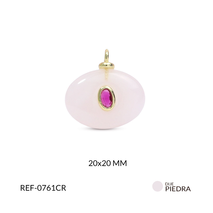 Dije en piedra natural ovalado cuarzo rosado 20x20mm x und
