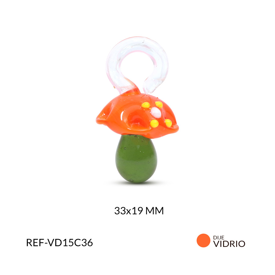 Dije en vidrio hongo naranja con flor 33x19mm x und