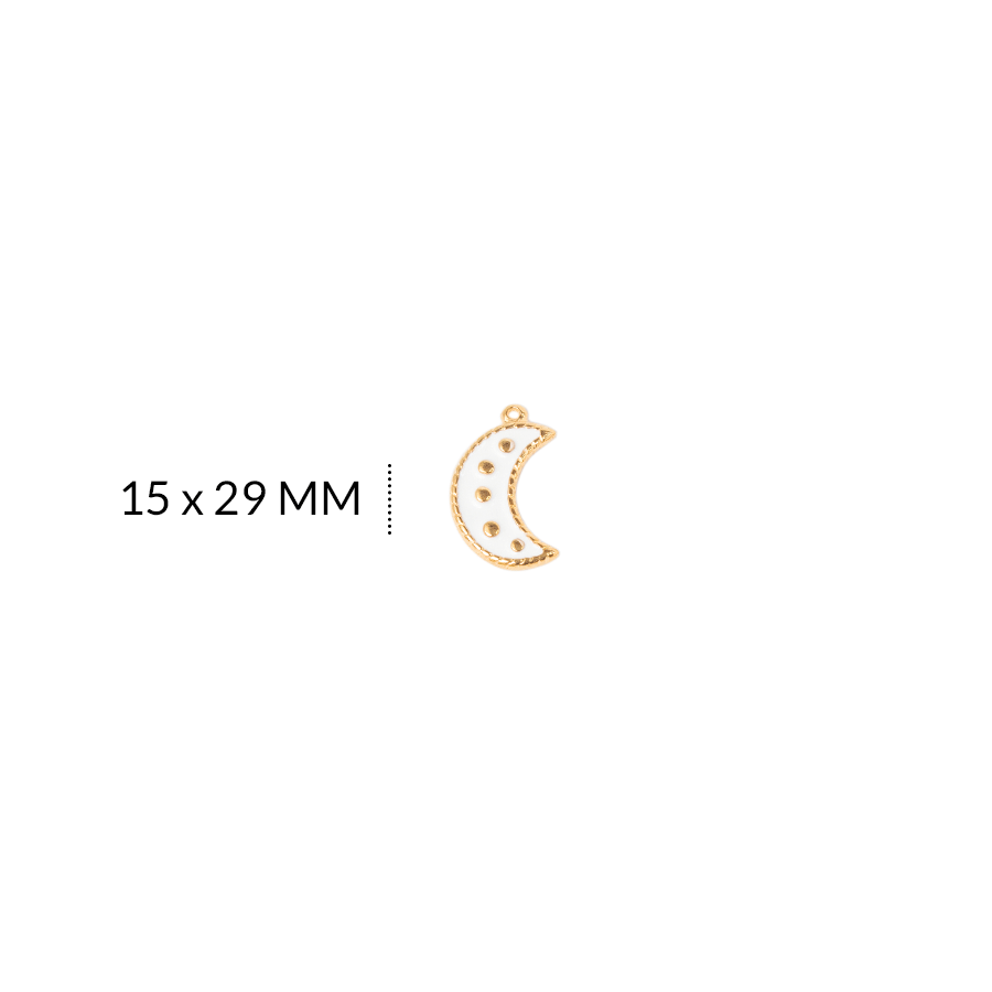 DIJE EN ZAMAK LUNA PEPITAS BLANCO 15 X 29 MM / color dorado / X UNIDAD / REF-ZD0343Dblanco / REF-ZD0343Dblanco