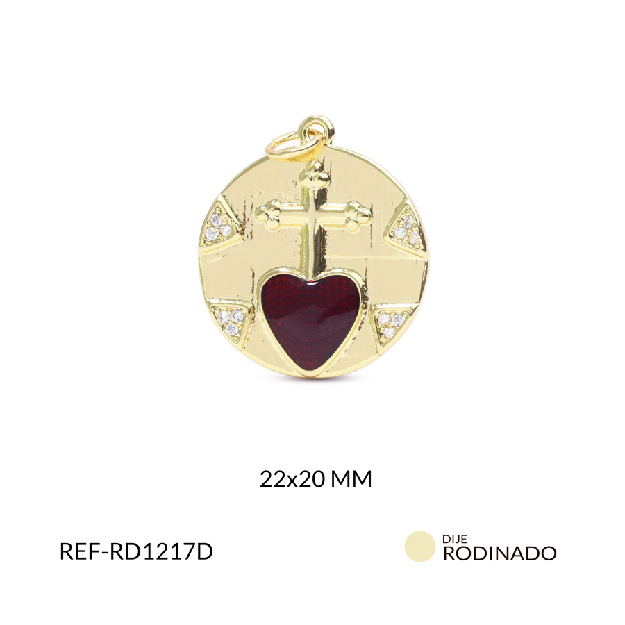 Dije redondo corazón rojo con circón 22x20mm x und