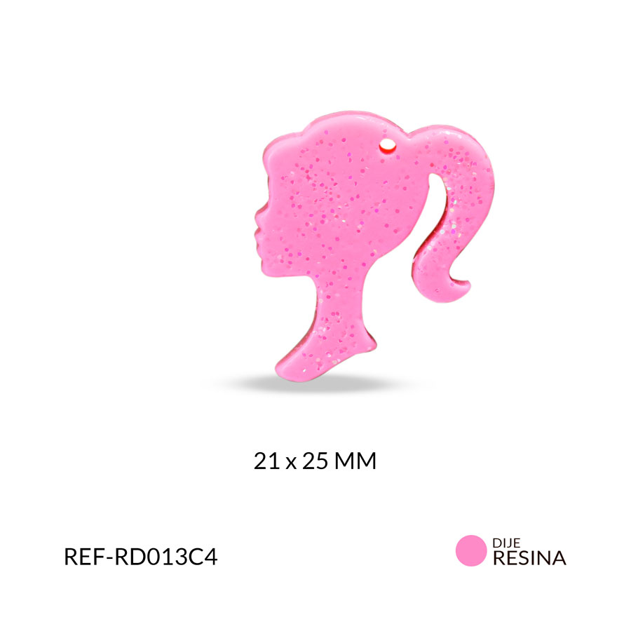 Dije resina perfil barbie color rosado 21 x 25 mm / x und / Ref-RD013C4