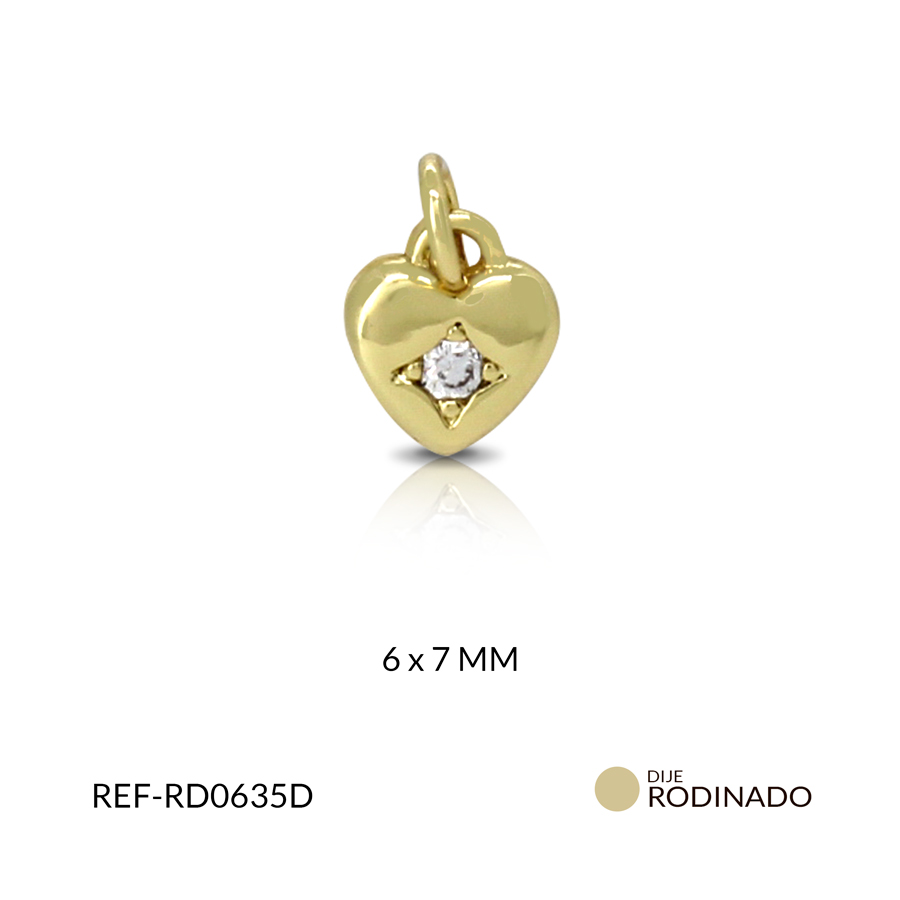 Dije Rodinado circon solitario plateado 7 x 6 mm color dorado / x und / Ref-RD0635D