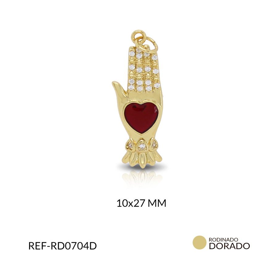 Dije rodinado mano hamsa circón plateado resina roja 10 x 27 mm / x unidad / Ref-RD0704D