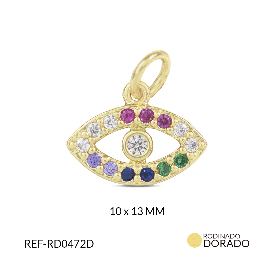 Dije rodinado ojo circon colores 10X13 MM / x unidad / REF-RD0472D