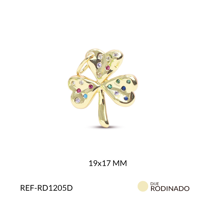 Dije trébol en rodinado con circón mixto 19x17mm x und
