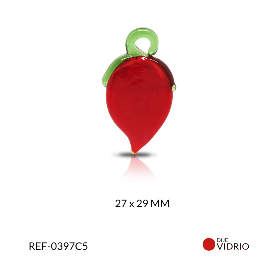 Dije vidrio fruto rojo 27x29mm / x unidad / Ref-0397C5