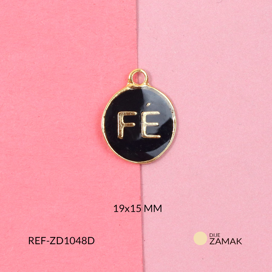 - Uso: Dije circular en zamak dorado con resina negro y la palabra FÉ grabada en relieve. Su diseño sencillo pero poderoso lo convierte en un accesorio ideal para pulseras, collares o rosarios. Aporta un mensaje espiritual y de protección.