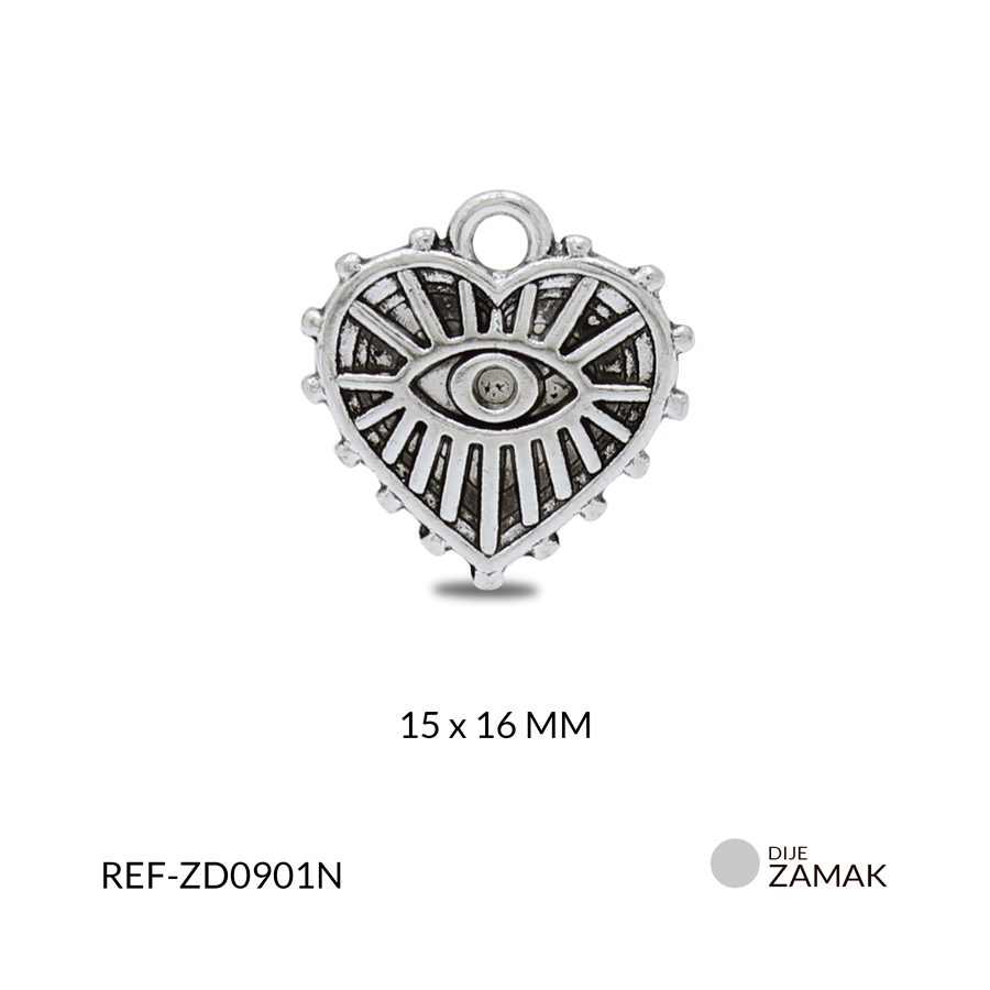 / Dije zamak corazón ojo rayas 15x16mm x 12und