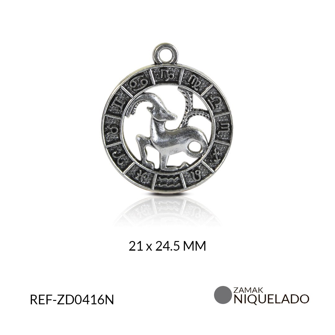 DIJE ZAMAK NIQUELADO SIGNO ZODIACAL CAPRICORNIO/PAQUETE x 6 UND/21x24mm / REF-ZD0416N