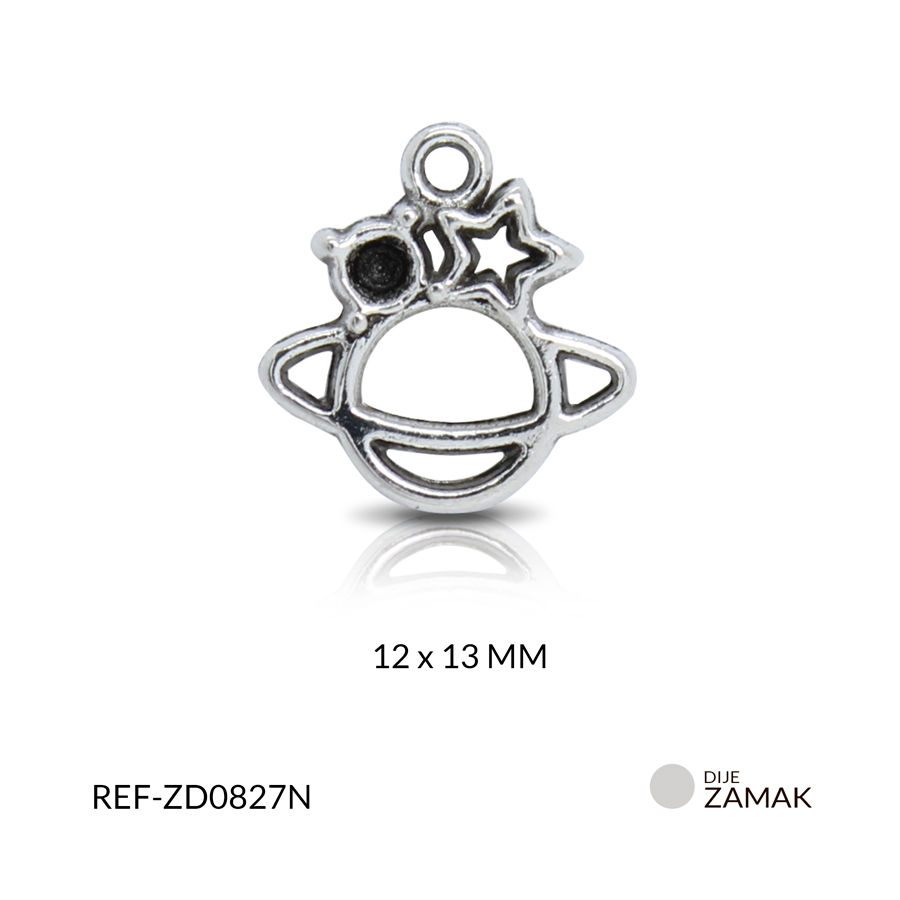 DIJE ZAMAK PLANETA ESTRELLA LUNA 12×13 MM / PAQUETE x 12 UND / Ref-ZD0827N