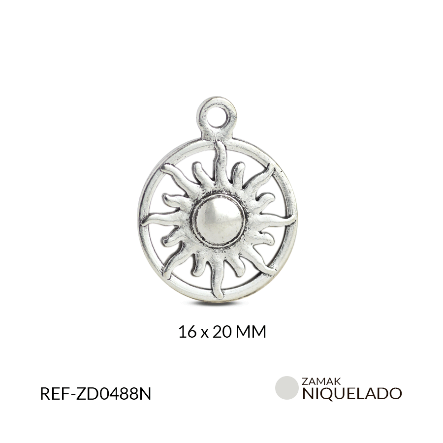 DIJE ZAMAK SOL CIRCULO 16X20 MM / paquete X 12 UND / Ref-zd0488n