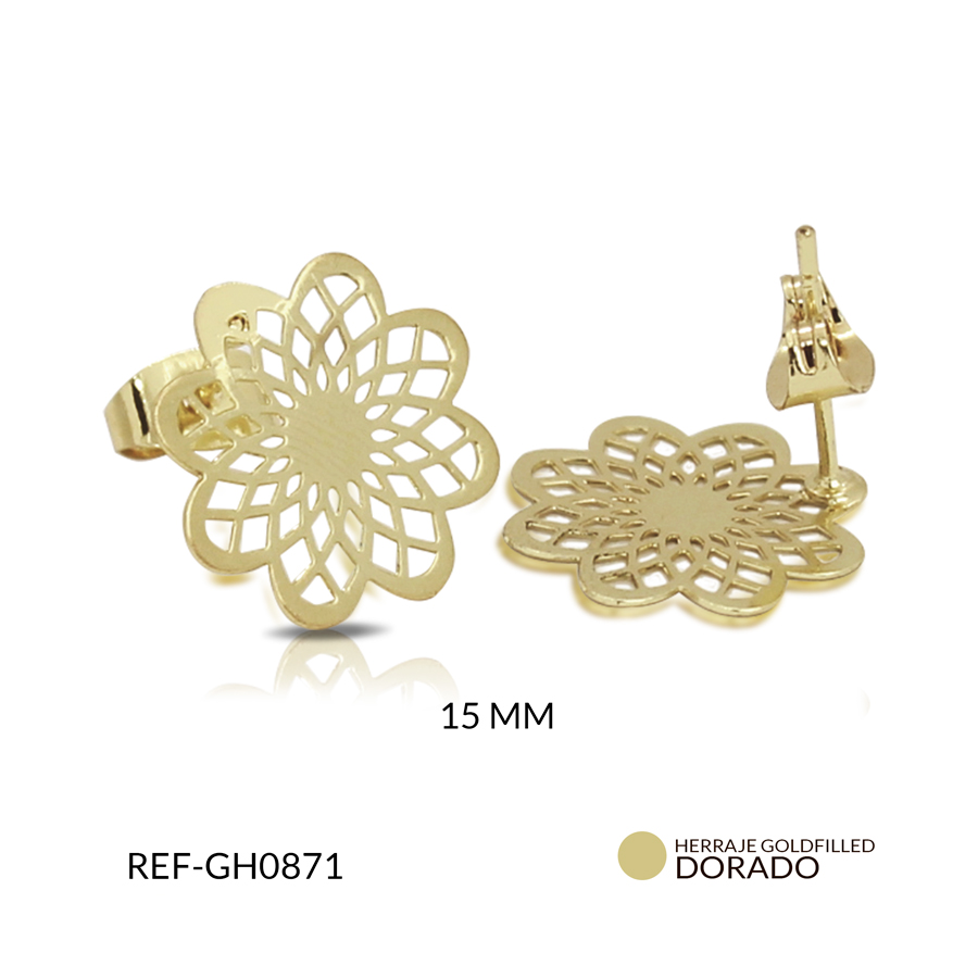 Herraje goldfilled para arete flor mándala 15 mm / x par / Ref-GH0871
