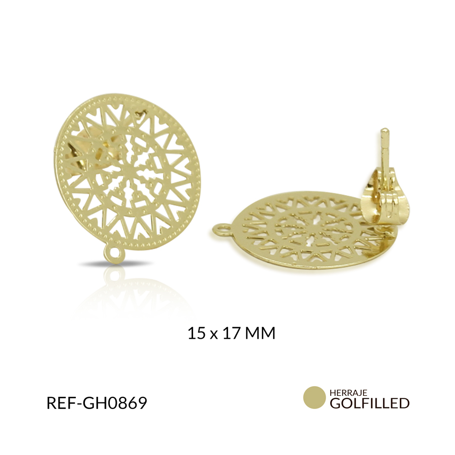 Herraje goldfilled para arete mándala 15 x 17 mm / x par / Ref-GH0869