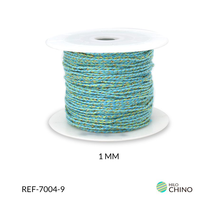 Hilo chino trenzado con lurex 1 mm color Azul T / x rollo / Ref-7004-9