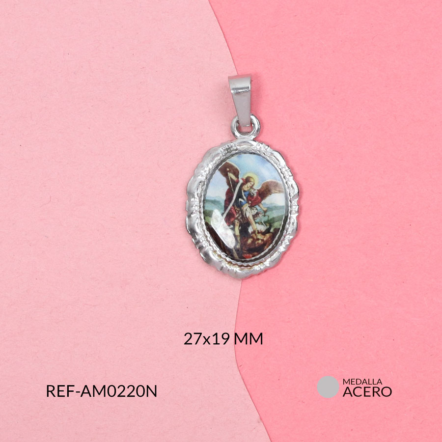 - Uso: Medalla religiosa elaborada en acero con imagen resinada de San Miguel Arcángel que resalta sus detalles y brillo. Representa protección, justicia y fortaleza espiritual. Ideal para crear collares, pulseras y accesorios devocionales