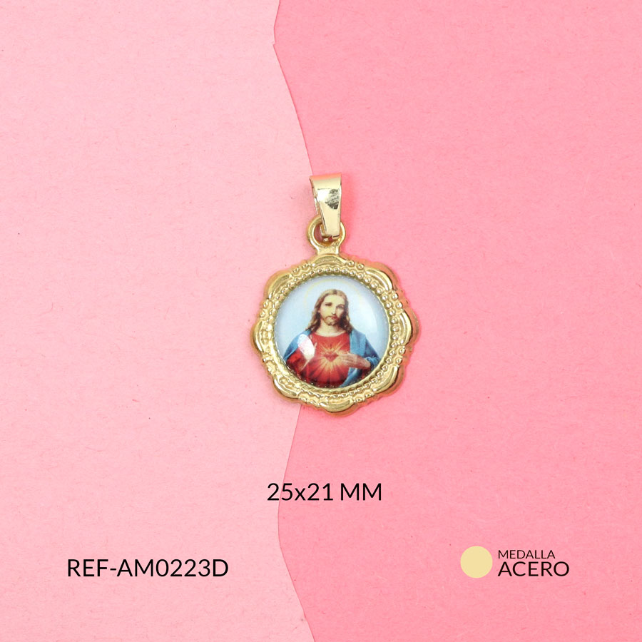 - Uso: Medalla religiosa elaborada en acero con imagen resinada del Sagrado Corazón de Jesús que resalta sus detalles y brillo. Representa amor, misericordia y protección espiritual. Ideal para crear collares, pulseras y accesorios devocionales