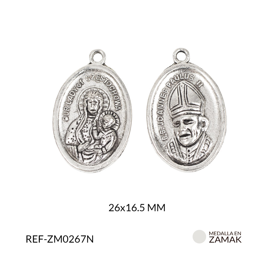 Medalla en zamak niquelada Juan Pablo 26×16.5 mm