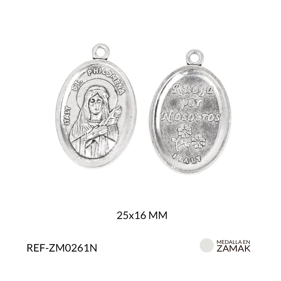 Medalla en zamak niquelada Santa Filomena 25×16 mm