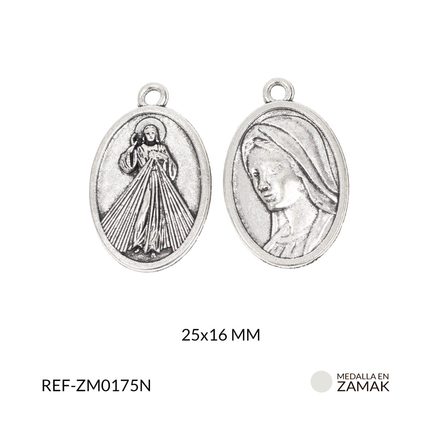 Medalla en zamak niquelada señor de la misericordia 25×16 mm x 6und