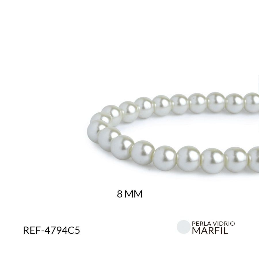 Perla vidrio redonda 8mm marfil / x sarta / Ref-4794C5 / Ref-4794C5
