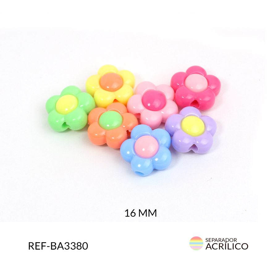 - Uso: El separador acrílico en forma de flor de 16 mm destaca por sus tonos pasteles vibrantes y acabado brillante. Es perfecto para crear pulseras, collares, aretes y accesorios alegres.