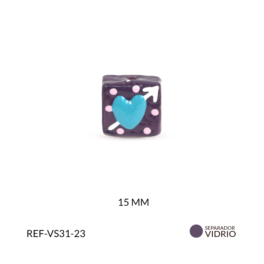 - Uso: Separador de vidrio cuadrado morado corazón azul flecha en el centro y delicados puntos decorativos alrededor. Su diseño transparente y brillante añade elegancia y detalle a pulseras, collares o accesorios que transmiten amor y sofisticación.